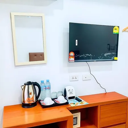 De kamers van het pand in Pattaya bieden gasten een flatscreen TV met satellietzenders en gemakken zoals airconditioning.